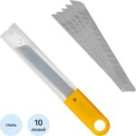 Найдено в описании товара Лезвие запасное для ножей эконом 9мм 10шт./уп., пласт.футляр