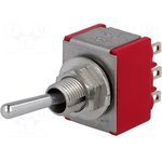 MRS-103A-C6-R, Переключатель ON-OFF-ON (6A 250VAC) SPDT 3P, красная клавиша