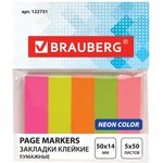 BRAUBERG бумажные, 50х14 мм, 250 штук (5 цветов х 50 листов), европодвес, 122731