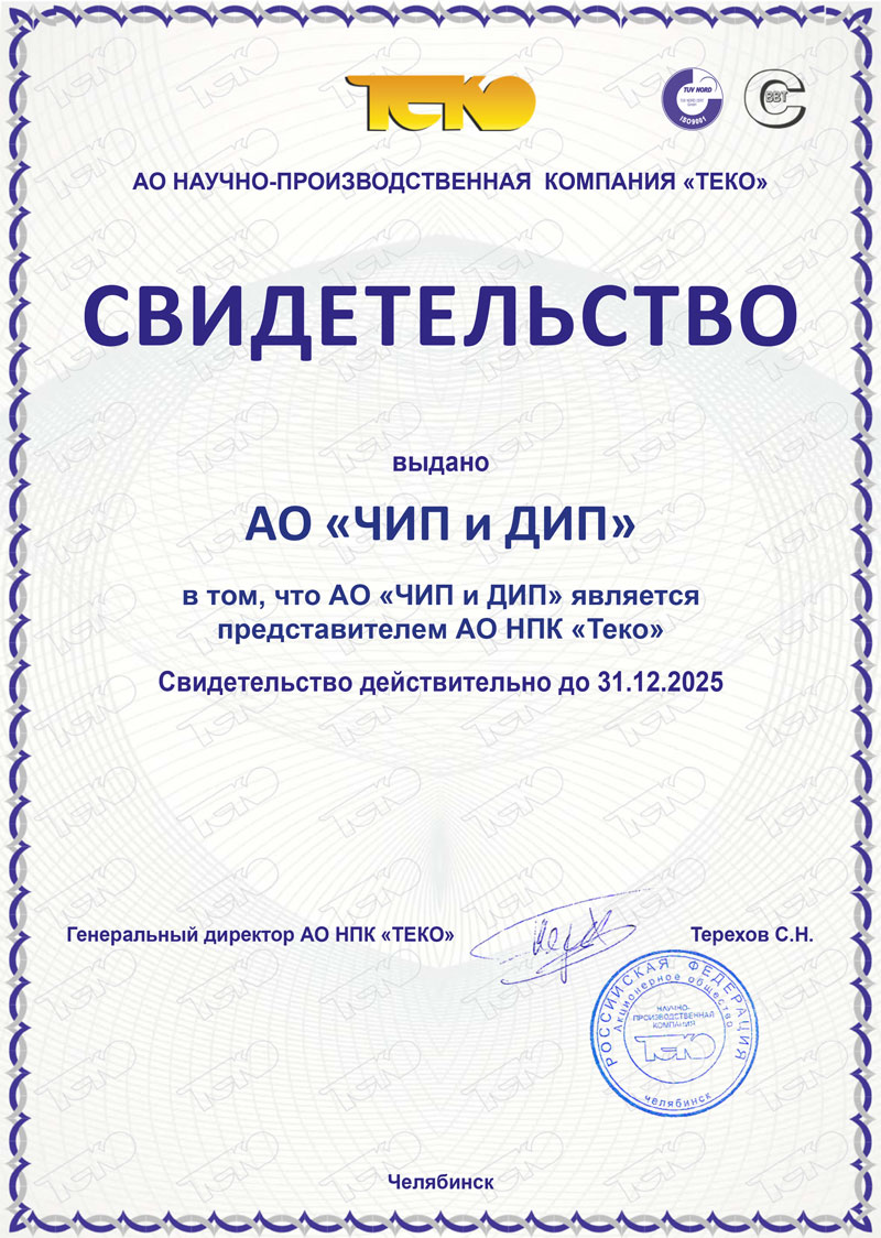 Компания «ЧИП и ДИП» - официальный представитель АО НПК «ТЕКО»!