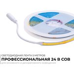 00-383 Светодиодная лента 24В, 12Вт/м, COB, 320д/м, IP20, 1000Лм/м, подложка 8мм, 5м. 6500К.