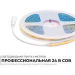 00-393 Светодиодная лента 24В, 10Вт/м, COB, 312д/м, IP20, 900лм/м, подложка 8мм, 5м, 3000К.