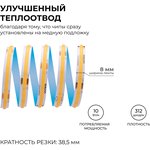 Светодиодная лента из линейки Стандарт с артикулом 00-393 работает от постоянного тока с напряжением 24В. Благодаря светодиодам COB, излучающим световой поток равный 900 Лм/м, лента является прекрасным решением для организации ярких декоративных подсветок. Она подойдет для создания декоративного освещения на базе многоуровневых потолков, а также будет отличным выбором для освещения торгового оборудования или требующих большой яркости рекламных вывесок. По сравнению с лампами накаливания светодиодная лента эквивалентна лампам мощностью 90 Вт. Данная модель светодиодной ленты обладает теплым белым цветом свечения с цветовой температурой 3000 К. При выборе светодиодной ленты важно учитывать такой параметр, как потребляемая мощность, чтобы правильно подобрать блок питания. У данной модели этот показатель равен 10 Вт на один метр. Степень защиты этого изделия соответствует стандарту IP20, что подразумевает использование только в сухих и проветриваемых помещениях. Отрезать светодиодную ленту можно в специально отмеченных местах, которые располагаются через каждые 38.5 мм. Компактные размеры светодиодной ленты с шириной 8 мм и основанием из гибкой, двухслойной, медной подложки дают огромное преимущество при создании любых дизайнерских фантазий.
