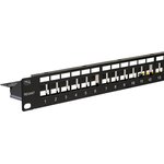 Содержит 24 порта: совмещает в своем корпусе разъемы разных видов (Keystone, RJ45 и т. д) и категорий (5е, 6 и т. д).