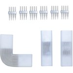 Комплект коннекторов Apeyron 09-19 предназначены для быстрого и легкого монтажа мультицветной светодиодной ленты 220 В. Он включает в себя 2 прямых коннектора , один L-образный коннектор и 6 игольчатых коннекторов необходимых для надежного крепления ленточных отрезков. Комплект с высокой степенью защиты от воды и конденсата IP44. Может применяться для монтажа в помещениях с повышенной влажностью или на улице.