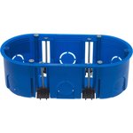 Установочная двухместная коробка Промрукав ГСК 80-0620 безгалогенная HF 140х68х46 80-0620позволяет осуществлять монтаж электрических розеток, выключателей, диммеров и других электроустановочных изделий на винтах или металлических захватах. Подрозетники подходят для всех типов стен. Удобство монтажа обеспечивается конструкцией вводов для кабеля, которые можно выломать, без использования дополнительного инструмента. Климатическое исполнение установочной коробки 80-0620 - УХЛ4.
