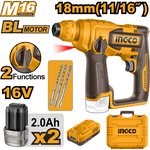 Аккумуляторный перфоратор 16В б/щ (4) INGCO CRHLI16168 INDUSTRIAL