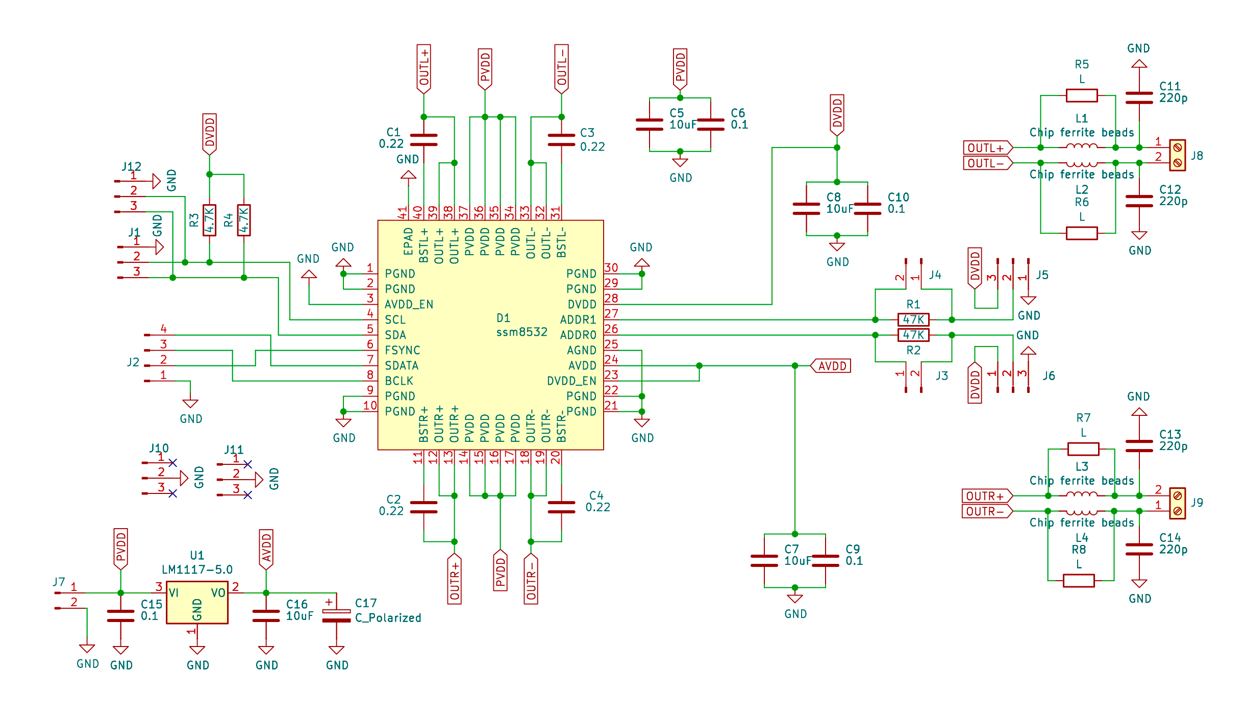 Цифровой стереофонический усилитель на SSM3582. Интегрирован в SigmaStudio и ChipStudio.