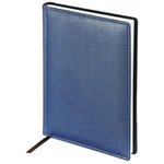 Ежедневник недатированный Attache Leader искусственная кожа А5 136 листов синийЕжедневник серии Leader выполнен с твёрдой обложкой, которая имитирует фактуру натуральной кожи, благодаря использованию итальянского переплётного материала с тонким слоем поролона. Это придаёт обложке объёмность и приятное ощущение на ощупь. Синий цвет обложки и простая однотонная отделка придают ежедневнику элегантность и сдержанную стильность.Ежедневник формата А5 (14,5x20,5 см) включает 136 страниц белой офсетной бумаги с плотностью 90 г/кв.м. Линовка в линейку с указанием времени суток позволяет удобно планировать рабочий день и эффективно использовать ежедневник в офисе. На каждой странице есть бордовое ляссе для навигации, что улучшает удобство работы с ним.Он также подходит для персонализации и может быть выполнен с тиснением. Этот ежедневник не имеет кармана, календаря или фиксирующей резинки, что подчёркивает его практичность и минимализм. Упакован в термопленку, что помогает сохранить его в идеальном состоянии.