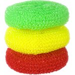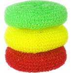 Губки для посуды пластиковые,комплект 3 шт., сетчатые по 7 г, 603107