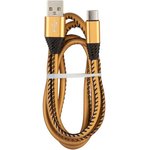Кабель USB "LP" Type-C Кожаная оплетка 1м. (золотой/европакет)
