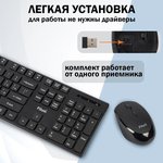 Комплект клавиатуры и мыши беспроводного типа подключения предназначена для офисных задач и домашнего использования. Клавиатура и мышь подключаются к устройствам посредством интерфейса USB к ноутбукам и моноблокам. Для автономной работы комплекта необходимы стандартные батарейки типа АА.