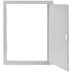 На дверце предусмотрен паз для удобного открывания люка. Закрытие дверцы производится путем фиксации "шип - паз". Габаритный размер, указанный в наименовании - это габарит внутренней части люка, монтируемой в нишу.