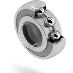 Корпусный подшипник сконструирован на основе уплотнённых радиальных шарикоподшипников. Такой вариант применяется в условиях постоянного и переменного направления вращения. Внутреннее кольцо расширено с обеих сторон, а его фиксация на валу осуществляется путем затягивания двух (установочных) винтов на внутреннем кольце, что упрощает монтаж.