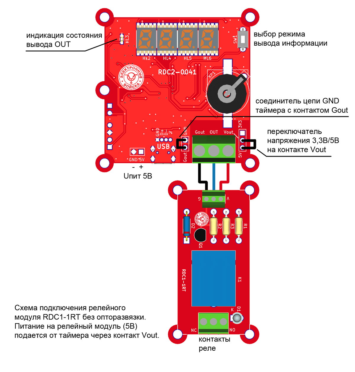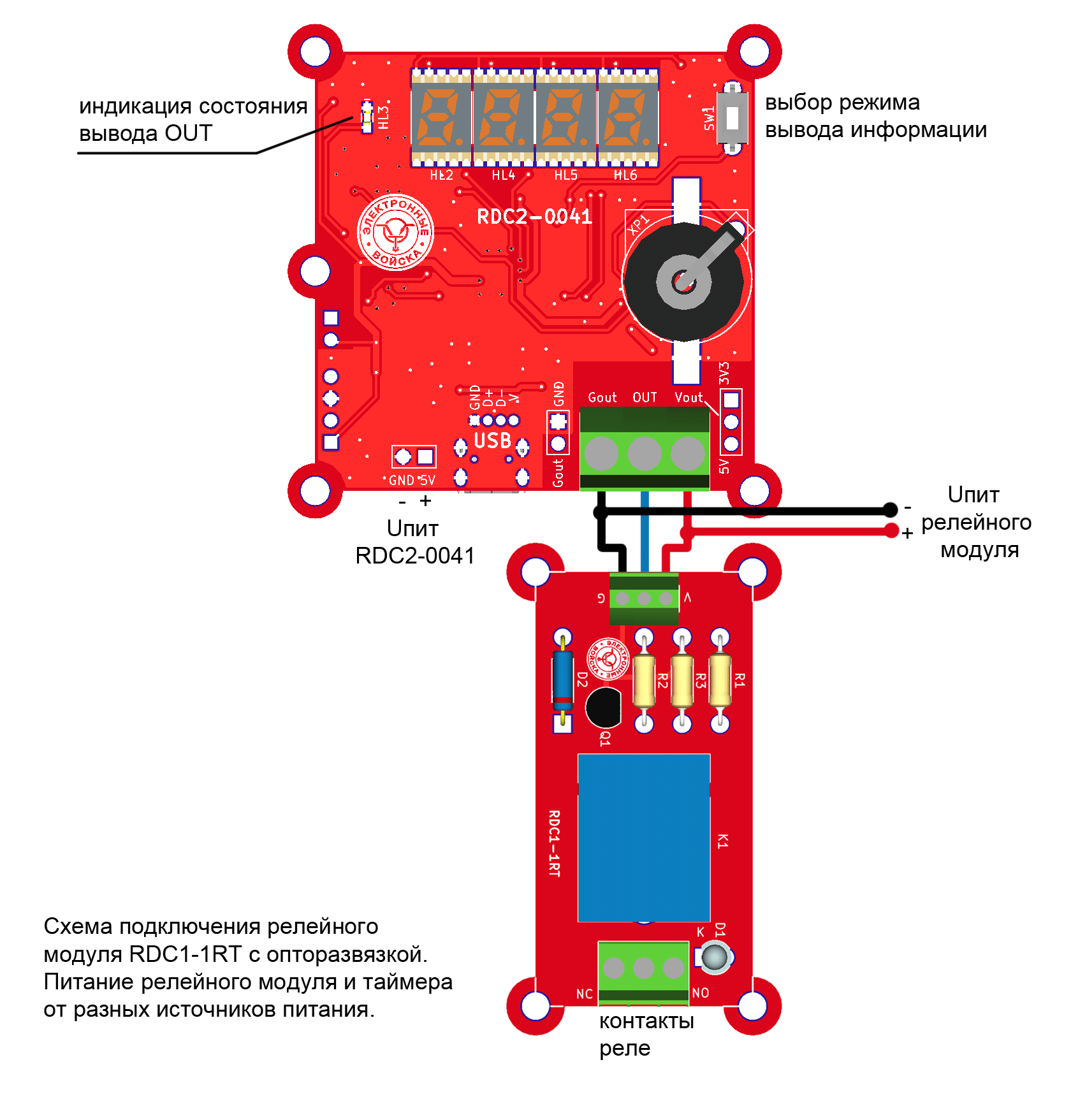 Управляющий выход таймера можно подключить двумя способами. Через оптопару обеспечивающую гальваническую развязку. Непосредственно с уровнями управляющего сигнала 3,3В или TTL 5В.