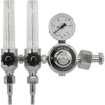 Универсальный регулятор расхода газа У-30/АР-40-2Р (с двумя ротаметрами) ВАРИАНТ предназначен для точного снижения давления защитного газа, поступающего из магистрали или баллона, и поддержания стабильного расхода при электросварочных работах. Он оснащен двумя встроенными ротаметрами для измерения расхода газа и манометром для контроля давления на входе, что обеспечивает повышенную точность и контроль в процессе работы.