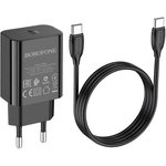 Сетевое зарядное устройство (СЗУ) BOROFONE BA65A 1xUSB-C, 3А, PD20W + кабель Type-C, 1м (черный)