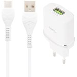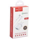Сетевое зарядное устройство (СЗУ) HOCO C12Q Smart 1xUSB, 3А, 18W, QC3.0, LED + Кабель USB Type-C, 1м