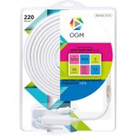 В состав готового комплекта с артикулом SL-52 входит 5 метров светодиодной ленты, которая работает от переменного напряжения 230 В. Благодаря светодиодам smd 5050 излучающим световой поток равный 700 Лм/м* лента является прекрасным решением для воплощения в жизнь такого элемента декора, как декоративная подсветка в нежилых помещениях, беседках и уличных конструкциях. Она подойдет для декорирования ниш в стенах, многоуровневых потолков и даже мебели. По сравнению с лампами накаливания светодиодная лента эквивалентна лампам мощностью 70 Вт. Данная модель светодиодной ленты является многоцветной. Каждый светодиод такой ленты имеет 3 базовых цвета: синий, зеленый и красный. В зависимости от используемого контроллера можно получить до 256 различных оттенков свечения. Также в состав комплекта входит шнур питания с коннектором для подключения к светодиодной ленте 220В Степень защиты светодиодной ленты соответствует стандарту IP65, что позволяет использование не только во влажных помещениях, но и на улице. Отрезать светодиодную ленту можно в специально отмеченных местах, которые располагаются через каждый 1 м. Компактные размеры светодиодной ленты с шириной 15.4 мм и основанием из гибкой, двухслойной, медной подложки дают огромное преимущество при создании любых дизайнерских фантазий. В дополнение к вышеупомянутой информации добавим, что данный комплект уже содержит в своем составе заглушку, которая уже установлена с одной из сторон светодиодной ленты и пластиковые П-образные крепежи для закрепления ленты на поверхности.