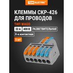 Разветвительная клемма СКР-426 от бренда TDM ELECTRIC - это надежное и удобное решение для разветвления и соединения проводов в электрических сетях. Клемма предназначена для быстрого и безопасного подключения проводников сечением до 4 мм². Благодаря простой конструкции и высокому качеству материалов, она широко используется в бытовых и промышленных электромонтажных работах.