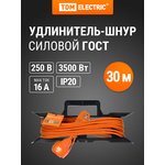 SQ1302-0333, Удлинитель-шнур силовой на рамке, 30 метров, 1 розетка, ПВС 3х1,0 TDM Electric