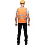 Жилет сигнальный Тип 1Т оранжевый с СОП размер XXL (56-58). Сигнальный жилет Тип Т. Размер подходит для ношения поверх другой одежды, предназначен для взрослых мужчин и женщин. Основной цвет - оранжевый, с высокозаметными светоотражающими элементами, позволяющими видеть его как днем, так и ночью. Жилет рекомендован для использования работниками коммунальных служб, водителями, пешеходами, велосипедистами и другими участниками дорожного движения, особенно при ремонте дорог или работе в опасных зонах.Материал изделия - 100% полиэфир, плотность ткани составляет 120 г/кв.м. Модель выполнена с учетом плотного облегания поверх верхней одежды, для удобства и свободы движений. Ширина светоотражающей ленты - 50 мм, всего предусмотрено 2 светоотражающих полосы, что соответствует второму классу защиты по стандартам безопасности.Жилет застегивается на центральную ленту-липучку, что позволяет быстро надевать его поверх повседневной или рабочей одежды. Это добавляет удобства и позволяет носить жилет в любую погоду, включая холодное время года.Для ухода рекомендуется ручная стирка или щадящий режим стирки при низких температурах, чтобы сохранить свойства материала и светоотражающих элементов на долгий срок.Изделие соответствует второму классу риска и второму классу защиты, поэтому может использоваться при ремонтных работах на проезжей части, строительных и других специализированных работах.Подобрать размер Цвет на изображении товара в интернет-магазине или в печатном каталоге может отличаться от оригинала из-за особенностей цветопередачи монитора.
